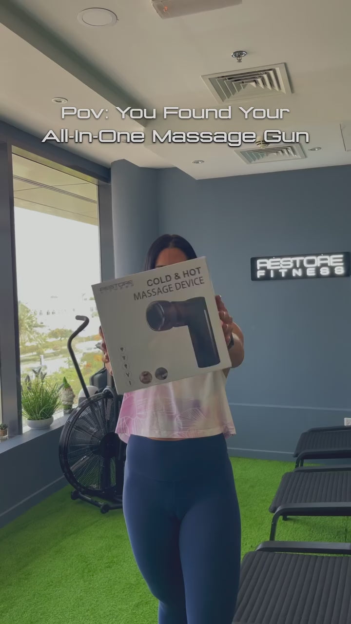 Compact handheld massage with hot & cold heads with 5 attachments. Relieves soreness and aids recovery on-the-go.